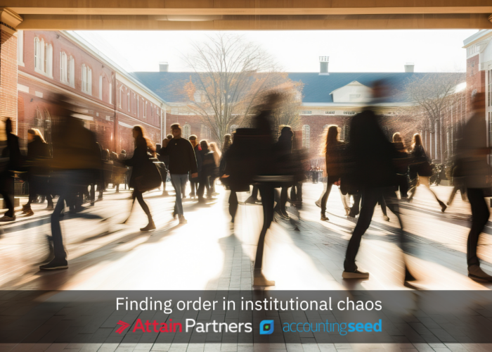 Ready to move from chaos to control? Accounting Seed is built natively on Salesforce, eliminating data silos between advancement and finance. Attain Partners provides implementation support for higher education institutions.